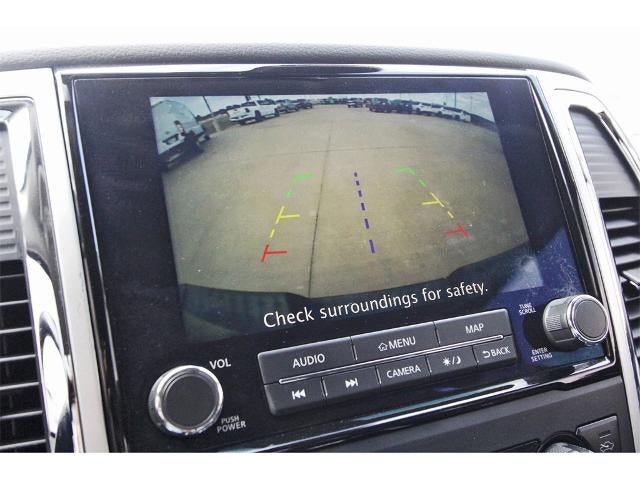 Accessory Utility Package (Bumper Step and Trailer Hitch), SV Convenience Package (110V/12V Outlets In Back Of Center Console, 2 Illuminated USB-A Ports In Back Of Center Console, Auto-Dimming Rear-View Mirror, Chrome Interior Door Locks, Convex Spotter Mirror, Dedicated Cell Phone Holder, Dual Zone Automatic HVAC, Front & Rear Parking Sensors, Heated Front Captain's Chairs, Intelligent Key System, Leather-Wrapped Steering Wheel, Power Sliding Rear Window w/Defogger, Radio: NissanConnect w/Navigation, Rear HVAC Vents, Remote Engine Start on Key Fob, and Traffic Sign Recognition (TSR)), 3.692 Axle Ratio, 4-Wheel Disc Brakes, 6 Speakers, ABS brakes, Air Conditioning, Alloy wheels, AM/FM radio: SiriusXM, Auto High-beam Headlights, Blind Spot Warning, Brake assist, Bumpers: chrome, Carpet Floor Mats (L95), Cloth Seat Trim, Driver door bin, Driver vanity mirror, Dual front impact airbags, Dual front side impact airbags, Electronic Stability Control, Emergency communication system: NissanConnect Services, Front anti-roll bar, Front Center Armrest w/Storage, Front reading lights, Front Split Bench Seat (40/20/40), Front wheel independent suspension, Fully automatic headlights, Heated door mirrors, Illuminated entry, Knee airbag, Loop Side Steps, Low tire pressure warning, NissanConnect featuring Apple CarPlay and Android Auto, Occupant sensing airbag, Outside temperature display, Overhead airbag, Overhead console, Panic alarm, Passenger door bin, Passenger vanity mirror, Power door mirrors, Power steering, Power windows, Radio data system, Radio: NissanConnect AM/FM, Rear anti-roll bar, Rear Parking Sensors, Rear seat center armrest, Rear step bumper, Rear window defroster, Remote keyless entry, Security system, Speed control, Speed-sensing steering, Speed-Sensitive Wipers, Splash Guards, Split folding rear seat, Steering wheel mounted audio controls, Tachometer, Telescoping steering wheel, Tilt steering wheel, Traction control, Trip computer, Variably intermittent wipers, Voltmeter, Wheels: 18" x 8" Silver Painted Alloy, and Wheels: 20" x 8" Chrome.