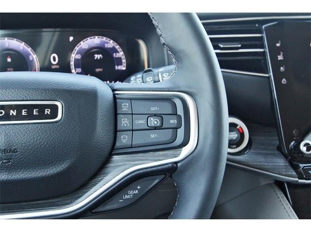 Preferred Equipment Group (60/40 Power Recline 3rd Row Seat and Heads-Up Display), Quick Order Package 25N, 10 Speakers, 20" x 9.0" Aluminum Wheels, 3.55 Rear Axle Ratio, 3rd row seats: bench, 4-Wheel Disc Brakes, ABS brakes, Adjustable pedals, Air Conditioning, Alloy wheels, AM/FM radio: SiriusXM with 360L, Anti-whiplash front head restraints, Audio memory, Auto High-beam Headlights, Auto-dimming door mirrors, Auto-dimming Rear-View mirror, Auto-leveling suspension, Automatic temperature control, Brake assist, Bumpers: body-color, Compass, Delay-off headlights, Driver door bin, Driver vanity mirror, Driver's Seat Mounted Armrest, Dual front impact airbags, Dual front side impact airbags, Electronic Stability Control, Emergency communication system: Automatic SOS Call, Exterior Parking Camera Rear, Four wheel independent suspension, Front anti-roll bar, Front Bucket Seats, Front Center Armrest w/Storage, Front dual zone A/C, Front fog lights, Front reading lights, Fully automatic headlights, Garage door transmitter, Genuine wood console insert, Genuine wood dashboard insert, Genuine wood door panel insert, Heated door mirrors, Heated front seats, Heated rear seats, Heated steering wheel, Illuminated entry, Knee airbag, Leather Trimmed Bucket Seats, Low tire pressure warning, Memory seat, Navigation System, Normal Duty Suspension, Occupant sensing airbag, Outside temperature display, Overhead airbag, Overhead console, Panic alarm, Passenger door bin, Passenger seat mounted armrest, Passenger vanity mirror, Pedal memory, Power adjustable front head restraints, Power door mirrors, Power driver seat, Power Liftgate, Power passenger seat, Power steering, Power windows, Radio data system, Radio: Uconnect 5 Nav w/10.1" Display, Rain sensing wipers, Rear air conditioning, Rear anti-roll bar, Rear dual zone A/C, Rear reading lights, Rear seat center armrest, Rear window defroster, Rear window wiper, Reclining 3rd row seat, Remote keyless entry, Security system, Speed control, Speed-sensing steering, Speed-Sensitive Wipers, Split folding rear seat, Steering wheel memory, Steering wheel mounted audio controls, Tachometer, Telescoping steering wheel, Tilt steering wheel, Traction control, Trip computer, Turn signal indicator mirrors, Variably intermittent wipers, Ventilated front seats, and Voltmeter.