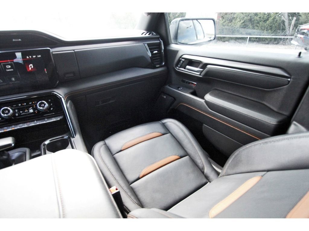 Sierra 1500 AT4, 4D Crew Cab, EcoTec3 6.2L V8, 10-Speed Automatic, 4WD, Summit White, Jet Black With Kalahari Accents Leather, 120-Volt Bed Mounted Power Outlet, 120-Volt Interior Power Outlet, 2 Charge/Data USB Ports Inside Center Console, 2 Type-C Charge-Only Rear USB Ports, 2 USB Ports, 220 Amp Alternator, AT4 Preferred Package, AT4 Premium Package, Auto-Locking Rear Differential, Bed View Camera, Black Chrome Header & Grille Insert Bars, Color-Keyed Carpeting Floor Covering, Deep-Tinted Glass, Electric Rear-Window Defogger, Floor-Mounted Center Console, Front Prem Floor Liners w/Removable Carpet Insert, Front Rain-Sensing Wipers, GMC Connected Access Capable, HD Surround Vision, Heated 2nd Row Outboard Seats, Heated Driver & Front Outboard Passenger Seating, Heavy-Duty Air Filter, Hill Descent Control, Hitch Guidance, Hitch View, In-Vehicle Trailering System App, Integrated Trailer Brake Controller, Keyless Open & Start, LED Cargo Area Lighting, Multicolor 15 Diagonal Head-Up Display, Navigation System, Off-Road High Clearance Step (LPO), OnStar & GMC Connected Services Capable, Perimeter Lighting, Power Door Locks, Power Front Passenger Windows w/Express Up/Down, Power Front Windows w/Driver Express Up/Down, Power Rake & Telescoping Steering Column, Power Rear Windows w/Express Down, Power Sliding Rear Window w/Rear Defogger, Preferred Equipment Group 4SB, Premium Bose 7-Speaker Sound System, Push Button Start, Rear Camera Mirror, Rear Cross Traffic Braking, Rear Pedestrian Detection, Rear Prem Floor Liners w/Removable Carpet Insert, Rear Wheelhouse Liners, Red Recovery Hooks, Remote Vehicle Starter System, SiriusXM w/360L, Spray-On Pickup Bedliner w/AT4 Logo, Steering Wheel Audio Controls, Technology Package, Theft Deterrent System (Unauthorized Entry), Trailer Camera Provisions, Trailer Side Blind Zone Alert, Trailering Package, Ultrasonic Front & Rear Park Assist, Universal Home Remote, Ventilated Driver & Front Passenger Seats, Wi-Fi Hotspot Capable, Wireless Charging. Summit White 2024 GMC Sierra 1500 AT4 4WD 10-Speed Automatic EcoTec3 6.2L V8
