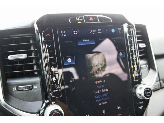 Big Horn Level 2 Equipment Group (115V Auxiliary Power Outlet, 115V Auxiliary Rear Power Outlet, 12" Touchscreen Display, 2nd Row In Floor Storage Bins, 400W Inverter, 4G LTE Wi-Fi Hot Spot, 9 Amplified Speakers w/Subwoofer, Air Conditioning ATC w/Dual Zone Control, Apple CarPlay, Auto Power-Folding Mirrors, Auto-Dimming Exterior Driver Mirror, Auto-Dimming Rear-View Mirror, Black Exterior Mirrors, Black Premium Power Mirrors, Cluster 7.0" TFT Color Display, Configurable Drive Mode, Connected Travel & Traffic Services, Connectivity - US/Canada, Convex Wide-Angle Exterior Mirror Insert, Exterior Mirrors Courtesy Lamps, Exterior Mirrors w/Heating Element, Exterior Mirrors w/Supplemental Signals, Glove Box Lamp, Google Android Auto, GPS Antenna Input, GPS Navigation, HD Radio, Heated Front Seats, Heated Steering Wheel, Integrated Voice Command w/Bluetooth®, Leather Wrapped Steering Wheel, LED Dome Lamp w/On/Off Switch, LED Footwell Lighting, Media Hub w/2 Charge Only USBs, Overhead LED Lamps, Power 2-Way Driver Lumbar Adjust, Power Adjust 8-Way Driver Seat, Power Adjustable Pedals, Premium Overhead Console, Radio: Uconnect 5 Nav w/12.0" Display, Rear Power Sliding Window, Rear Window Defroster, Remote Tailgate Release, Security Alarm, SiriusXM w/360L, Steering Wheel Mounted Audio Controls, Sun Visors w/Illuminated Vanity Mirrors, Universal Garage Door Opener, and USB Host Flip), Night Edition (3 Rear Seat Head Restraints, 4 Way Front Headrests, Accent Color Door Handles, Accent Color Premium Power Mirrors, Accent Color Tailgate Handle, Anti-Spin Differential Rear Axle, Black Exterior Truck Badging, Black Headlamp Bezels, Black Interior Accents, Black Painted Exterior Mirrors Caps, Black Tail Lamp Bezels, Body Color Front Bumper, Body Color Rear Bumper w/Step Pads, Bucket Seats, Deluxe Cloth Bucket Seats, Front Seat Back Map Pockets, Full Length Floor Console, Grille Black Surround Black Mesh, Manual Adjust 4-Way Front Passenger Seat, RAM Grille Badge - Black, Rear 60/40 Folding Seat, Rear Center Armrest, and Wheels: 20" x 9.0" Aluminum Painted Clad), Quick Order Package 21R Lone Star (Regional) (Lone Star Badge), 4-Wheel Disc Brakes, 6 Speakers, ABS brakes, Air Conditioning, Alloy wheels, AM/FM radio, Apple CarPlay/Android Auto, Auto High-beam Headlights, Brake assist, Bumpers: chrome, Cloth Bench Seat, Compass, Delay-off headlights, Driver door bin, Dual front impact airbags, Dual front side impact airbags, Electronic Stability Control, Front anti-roll bar, Front Center Armrest w/Storage, Front fog lights, Front License Plate Bracket, Front reading lights, Front wheel independent suspension, Fully automatic headlights, Heated door mirrors, Illuminated entry, Low tire pressure warning, Manual Folding Exterior Mirrors, MOPAR Front & Rear Rubber Floor Mats, Occupant sensing airbag, Outside temperature display, Overhead airbag, Overhead console, Panic alarm, ParkView Rear Back-Up Camera, Passenger door bin, Passenger vanity mirror, Power door mirrors, Power steering, Power windows, Radio data system, Radio: Uconnect 5 W w/8.4" Display, RAM Grille Badge - Chrome, Rear anti-roll bar, Rear seat center armrest, Rear step bumper, Remote keyless entry, Speed control, Split folding rear seat, Supplier Part Tracking (J-1), Tachometer, Telescoping steering wheel, Tilt steering wheel, Traction control, Trip computer, Variably intermittent wipers, Voltmeter, and Wheels: 18" x 8" Cast-Aluminum Painted.